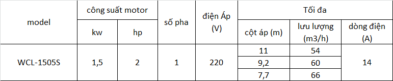Máy Bơm Ly Tâm Mitsubishi Cột Áp Cao WCL-1505S