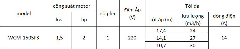 Máy Bơm Ly Tâm Mitsubishi Cột Áp Cao WCM-1505FS